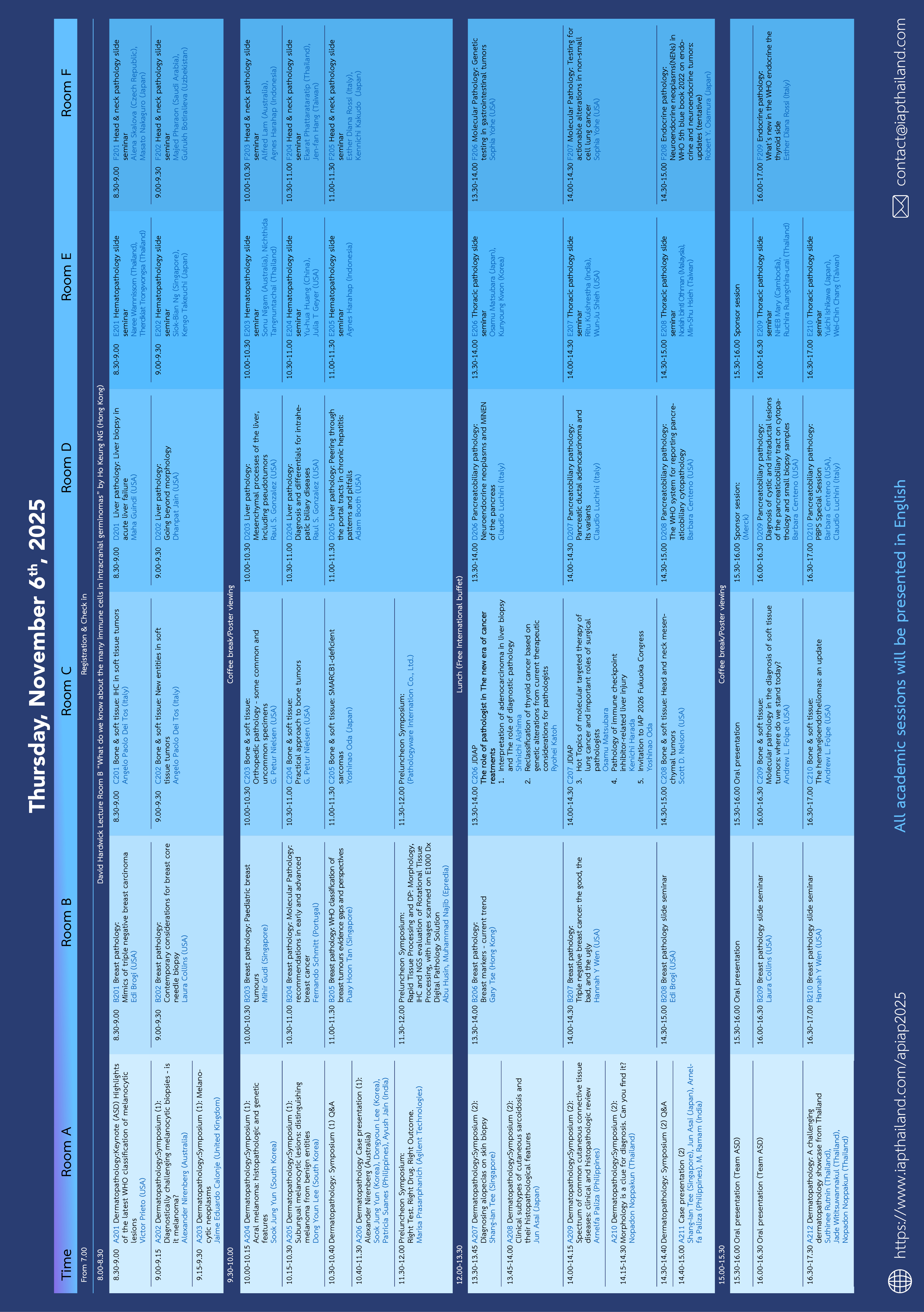 We are delighted to welcome you to the 63rd IAP Thailand Annual Meeting. Our three-day meeting will bring you updated knowledges from international and local experts in anatomical pathology such as ENT, GI, pancreas, pulmonary, GYN, breast, neuropathology, dermatopathology, hematopathology, and also cytology. Thanks to all speakers who are willing to come and share. There will be special lectures from keynote speakers every morning follow by three separate rooms. Even though you might miss some lectures in other room, we provide VDO upload in our facebook group that you can watch later.